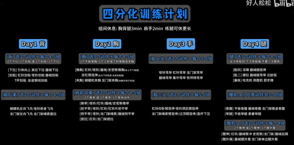 四分化训练计划详见图片: